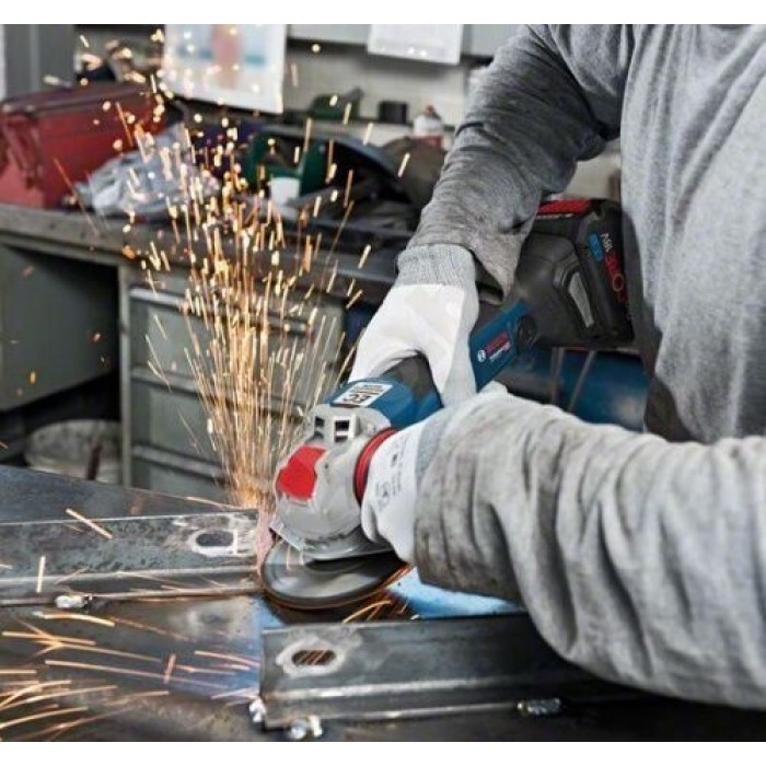 Аккумуляторная бесщеточная болгарка Bosch GWX 18V-15 SC Professional с регулировкой в L-Boxx 136 с 2 акб 18V 8.0Ah, з/у GAL 18V-160 C, с Bluetooth модулем GCY 42 (06019H6501) - инструмент имеет больше мощности, чем когда-либо: новая аккумуляторная угловая шлифовальная машина полностью эквивалентна проволочной мощностью 1500 Вт. Характеристики и преимущества аккумуляторной бесщеточной болгарка Bosch GWX 18V-15 SC Professional с регулировкой в L-Boxx 136 с 2 акб 18V 8.0Ah, з/у GAL 18V-160 C, с Bluetooth модулем GCY 42 (06019H6501): Инструмент работает от Li-Ion аккумуляторов мощностью в 18В; У инструмента бесщеточный двигатель BITURBO Brushless; Есть возможность регулировать число оборотов от 3400 до 11000 об/мин; Инструмент используется с кругом диаметров в 125 мм, посадкой 22,2 мм, резиновыми шлифтарелками 125 мм, чашечными щетками 75 мм; Болгарка с бесключевой сменой дисков X-Lock; Данные и настройки электроинструмента при установленном модуле Bluetooth® Low Energy Module GCY 42, есть возможность передаваться посредством через Bluetooth® между электроинструментом и телефоном; Также с Bluetooth модулем инструменту доступны функции связи: регистрация и персонализация; проверка состояния, информирование предупредительными сообщениями; общая информация и настройки; управление; Специальное приложение BoschToolbox App дает возможность запрограммировать до 6 ступеней числа оборотов, и при этом есть возможность их регулировать во время работы; Инструмент оснащен защитой от непреднамеренного запуска, который не дает включиться инструменту после перебоев с электроснабжением; Во время падения у инструмента срабатывает система Drop Control и останавливает его работу; Инструмент оснащен индикаторами: заряженности аккумулятора; температуры; состояния электроинструмента; С помощью инструмента можно выполнять сухой рез, обдирку, крацевание металлических и каменных материалов, также в комбинации, со специальным шлифнасадками, инструмент можно использовать для шлифования наждачной бумагойКомплектация: 2 аккумулятора ProCORE18V 8.0Ah; Зарядное устройство GAL 18V-160 C Professional, вкл. модуль Bluetooth Low Energy; Bluetooth модуль GCY 42 Professional; Защитный кожух; Дополнительная рукоятка Vibration Control; L-Boxx 136