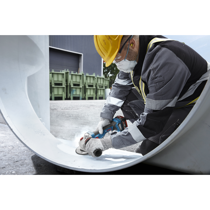 Професійна кутова шліфувальна машина Bosch GWS 18V-11 - ідеальний вибір для точного та інтенсивного шліфування й різання металу, каменю та інших матеріалів. Завдяки безщітковому двигуну ця болгарка забезпечує високу потужність (еквівалентну 1100 Вт мережевого інструменту) та тривалий термін служби без втрати продуктивності.