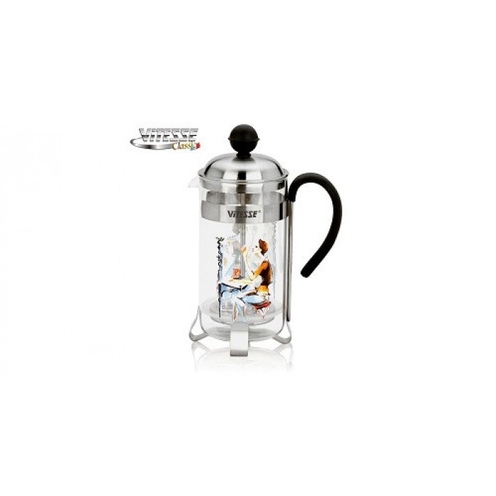 Кавоварка "френч-прес" від Vitesse легко та швидко допоможе приготувати каву, а все завдяки своїй унікальній конструкції. Кава в цьому френчі пресі просто заварюється гарячою, але не киплячою водою і настоюється близько 10 хвилин. Таким чином, він зберігає і свій смак та аромат. Після закінчення часу поршень з ситом опускається на дно заварника і при цьому частинки кавових зерен залишають рідину.