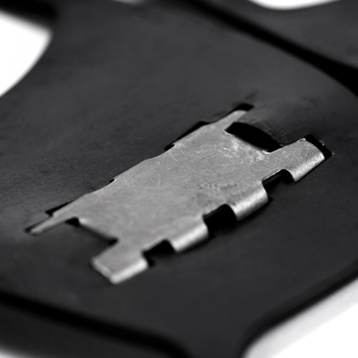- Надійне зчеплення: Сім міцних сталевих шипів, розташованих на металевій пластині, забезпечують стабільність і запобігають ковзанню. Шипи надійно закріплені та не можуть бути вирвані.