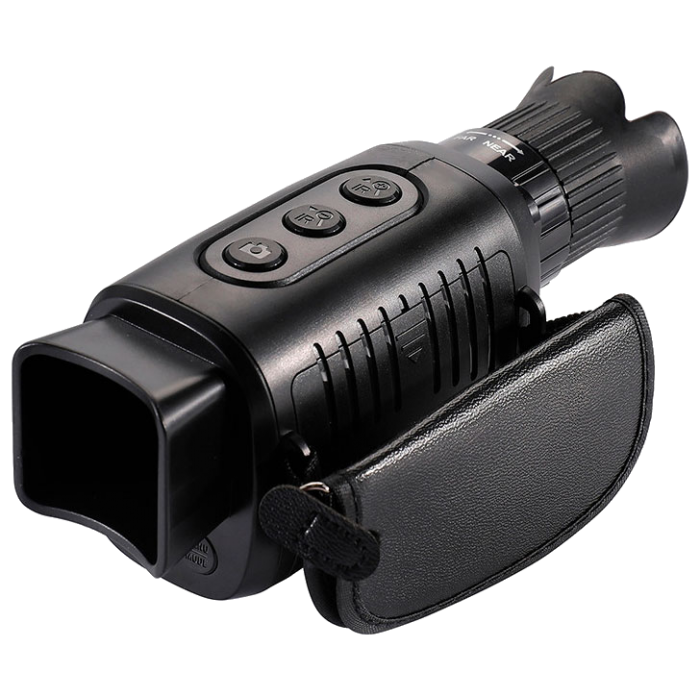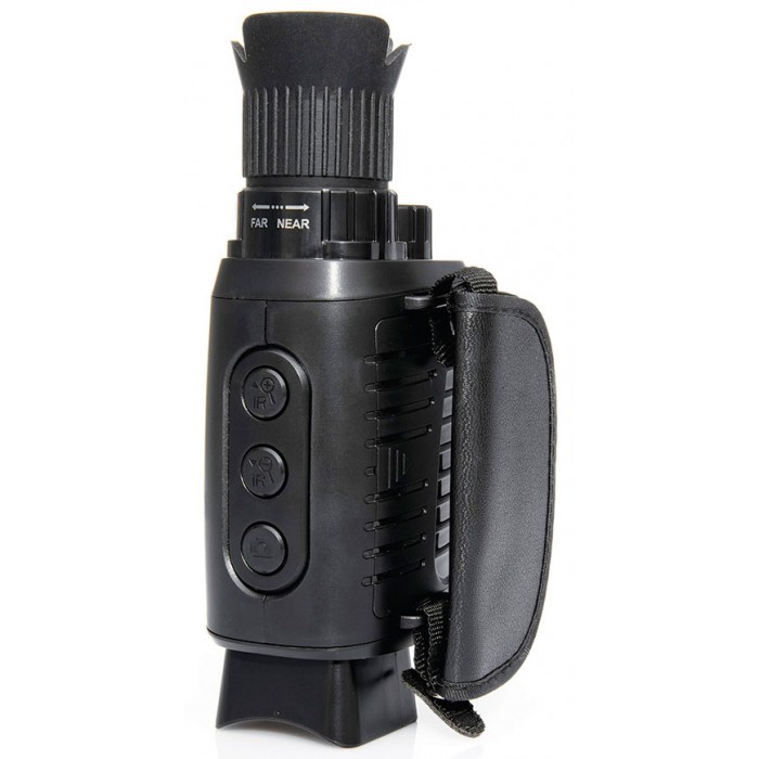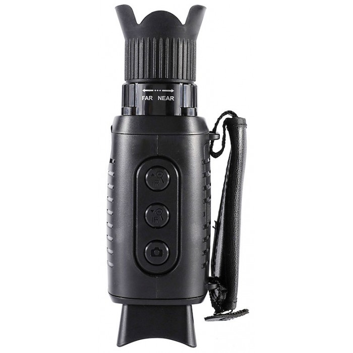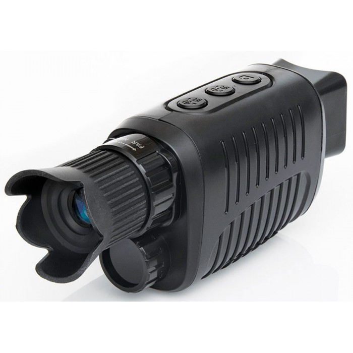 Зображення формується якісною скляною оптикою та чутливим CMOS-сенсором. Кільце налаштування фокусу зручно розташоване в зоні об'єктива, кнопки керування ІЧ-підсвічуванням – на верхній панелі приладу. Компактний і легкий монокуляр зручно взяти з собою, щоб швидко дістати його та приступити до спостережень, коли виникне потреба. Живлення здійснюється від звичайних батарейок, для економії їхнього заряду є функція автовідключення. Час безперервної роботи у нічному режимі сягає 6 годин. Надійний корпус із міцного ABS-пластику захищає прилад від пошкоджень у разі падіння з рук.