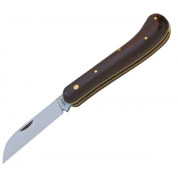Ніж складний для копулювання та обрізки. Рукоятка з упором - полірований горіх; внутрішня накладка виготовлена з латуні. Ручна робота.