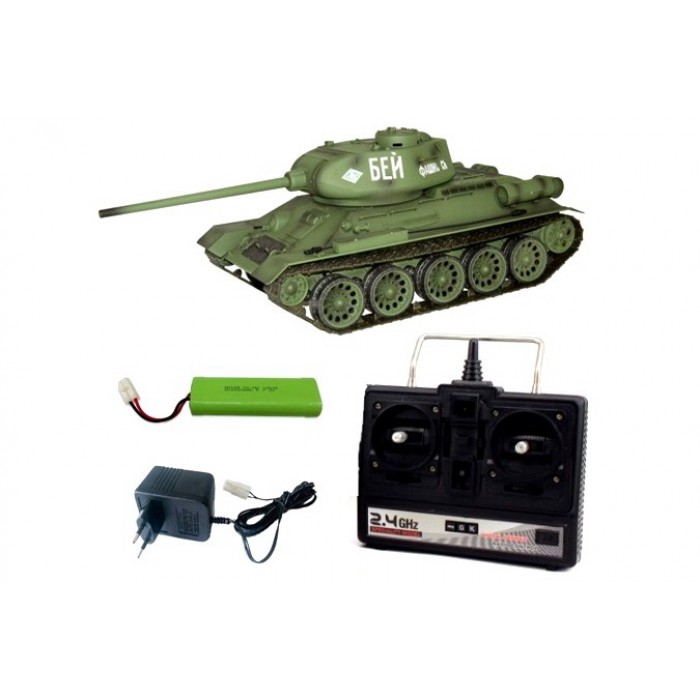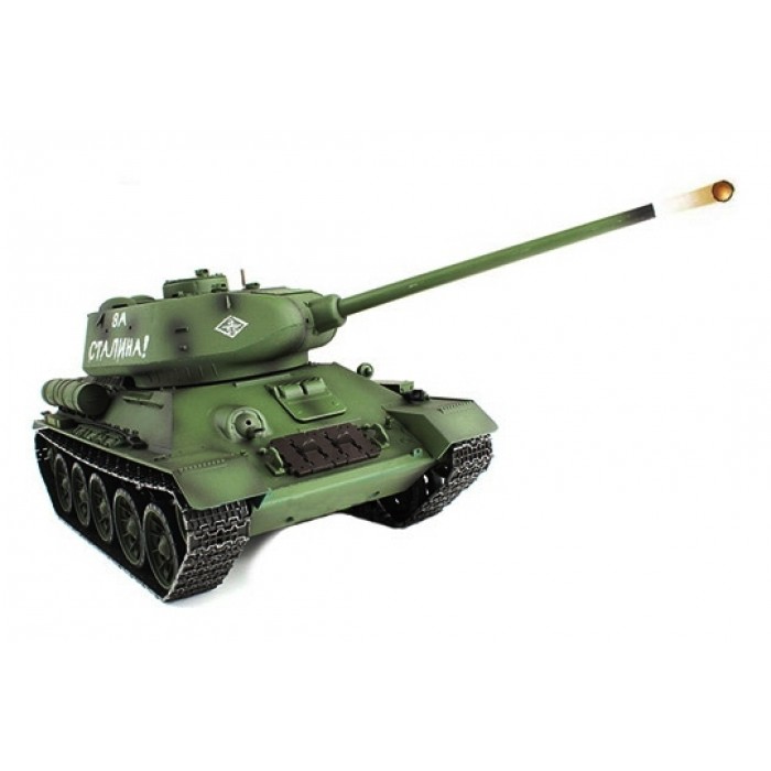 Радіокерована модель радянського танка Т-34/85 в масштабі 1:16 з пневматичним знаряддям і димовим ефектом.