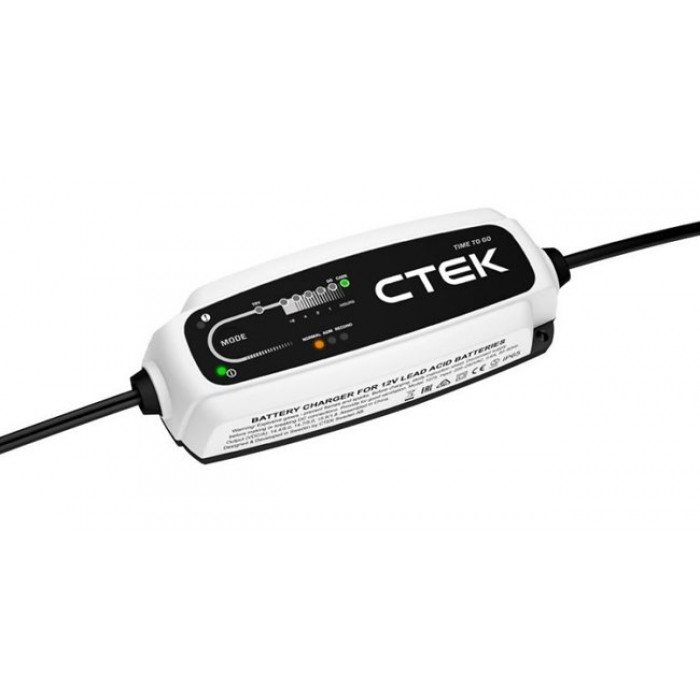 Зарядний пристрій CTEK CT5 TIME TO GO може точно розрахувати час завершення заряджання батареї. Послідовність світлодіодних індикаторів вказує на різні етапи зарядки, а також на час, що залишився до закінчення зарядки (у годинах). Також це ЗУ оснащено індикаторами, що вказують момент, коли батарея буде готова для ПРОБНОГО (TRY) запуску автомобіля, або для нормальної експлуатації (GO). Здібно відновлювати розряджені батареї.